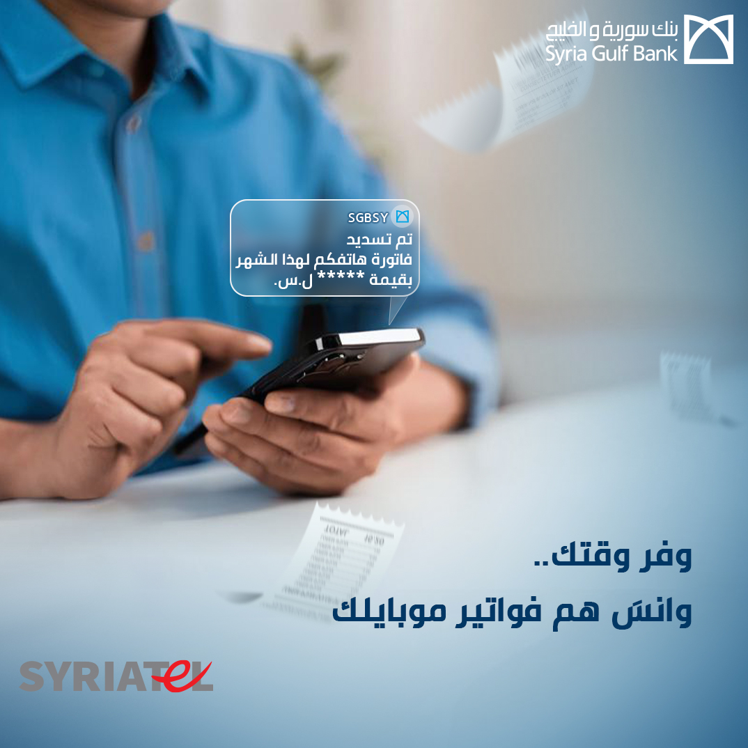 تمكن هذه الخدمة عملاء بنك سورية والخليج من تسديد قيمة فواتير خطوطهم النقالة لاحقة الدفع تلقائياً عبر حسابهم المصرفي من خلال تقديم طلب اقتطاع مباشر لمرة واحدة في أحد فروع بنك سورية والخليج .