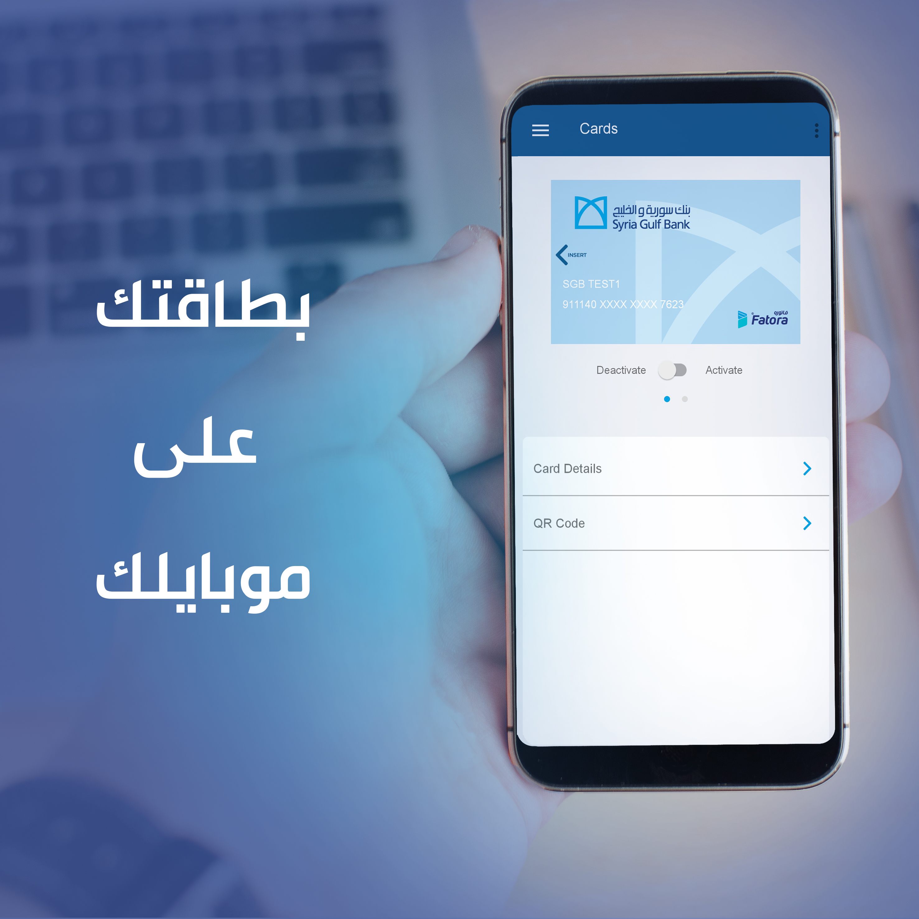 يقدم بنك سورية والخليج خدمة إدارة البطاقات المصرفية عبر تطبيق الموبايل البنكي، حيث أصبح بإمكان السادة عملاء البنك إدارة بطاقتهم المصرفية عبر تطبيق الموبايل البنكي من بنك سورية والخليج فتتيحُ لهم هذه الخدمة: