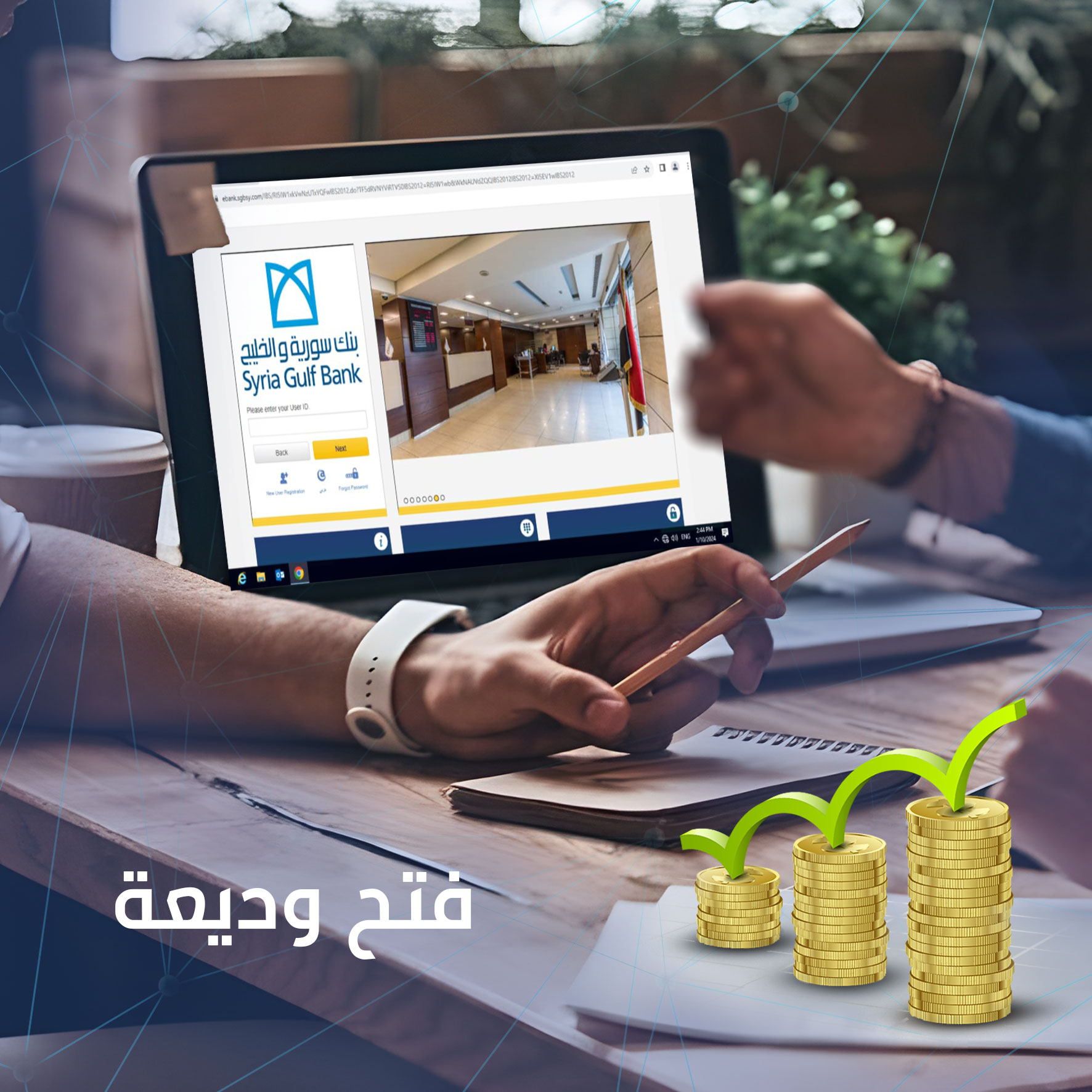 تتيح هذه الخدمة إمكانية فتح وديعة لأجل بشكلٍ مباشر ومن أي مكان وبأي وقت ضمن الحساب المصرفي للعميل، مع تحديد المدة والمبلغ الذي يرغب بتوظيفه من خلال الإنترنت البنكي الخاص ببنك سورية والخليج.